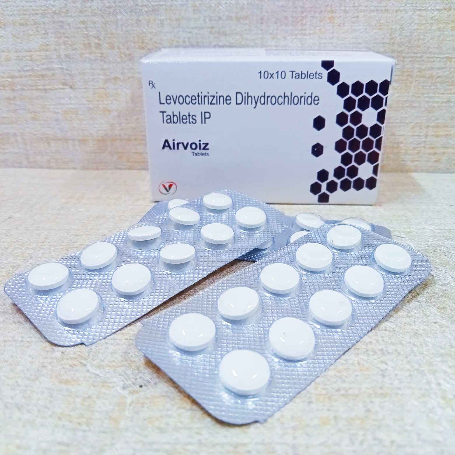 Airvoiz 5mg Tablet belongs to a group of medicines called antihistamines. It is used to treat various allergic conditions such as hay fever, conjunctivitis, some skin reactions such as eczema, and hives, and reactions to bites and stings. It also relieves watery eyes, runny nose, sneezing, and itching.